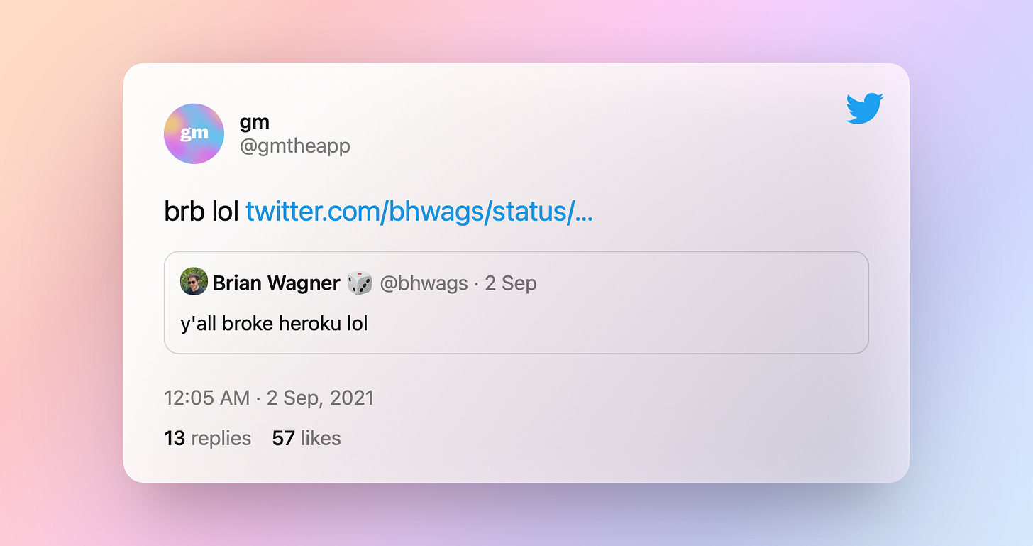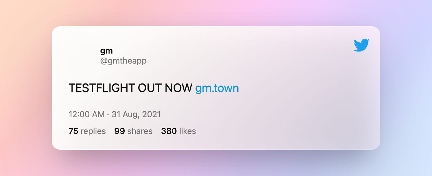 the pandy has brought us many a new social experiences but few have lived up to the hype that gm saw in its five day run. the virality + pure twitter signal brought joy for so many of us. gm the app might be gone for now but the memories we shared will live on forever to haunt our notifications.